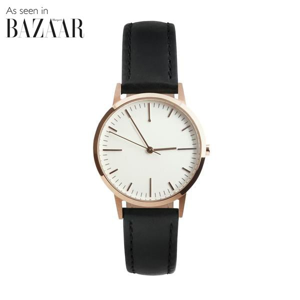 As seen in , the limited edition 30mm rose gold and black women’s watch combines the classic detailing of vintage watches with a modern minimalist finish.