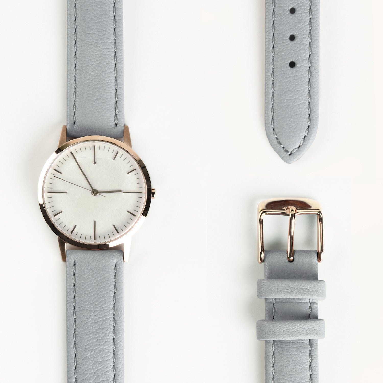 As seen in , the limited edition 30mm rose gold and grey leather women’s watch combines the classic detailing of vintage watches with a modern minimalist finish.